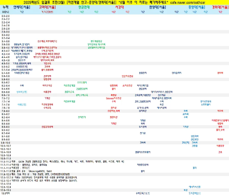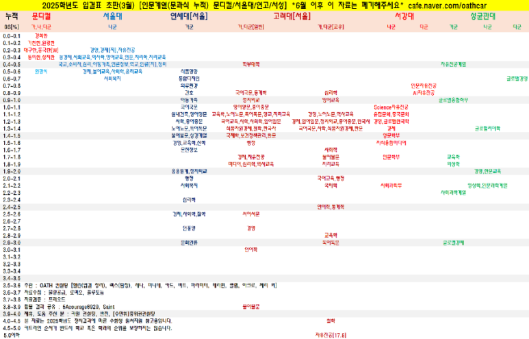 2025학년도 입시가 모두 끝이 났습니다. 학생들은 이제 저마다의 새학기를 다른 방법으로 맞이할 텐데요, 정시로 간 대학이 마음에 드는 대학일수도 있고 아닐 수도 있을 겁니다. 사실, 입결이라는 것을 예측하기가 쉽지 않기 때문에 더 높다고 생각하는 대학의 경쟁률이 높아 보여서 포기했다가 알고 보니까 추합이 가능한 점수였다는 아쉬운 상황도 많이 발생합니다. 그럼에도 불구하고 이 표에 나와 있는 대학들의 학과를 간 것만으로도 결코 쉬운 일은 아니라는 것은 확실합니다. 올해 입시의 변수는 당연히 2000명 증원된 의과대학 정원과 신설된 자유전공계열이었는데, 이로 인해 메디컬이 아닌 일반 학과들의 입결이 서울대학교 제외 붕괴할 것이라는 예측이 상당히 많았습니다. 그래서 각 대학의 입학처들이 이걸 어떻게 대응할 것인지도 굉장히 중요했습니다. 일단 현재 나온 자료의 겉으로 나오는 숫자로 봐서는 성균관대 입학처가 여러 가지 방법으로 대응을 가장 잘한 것으로 보입니다. 상대적으로 고려대와 한양대는 입결에서 전년도에 비해 확실히 숫자로는 내려간 모습을 보여줬습니다.